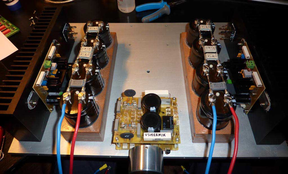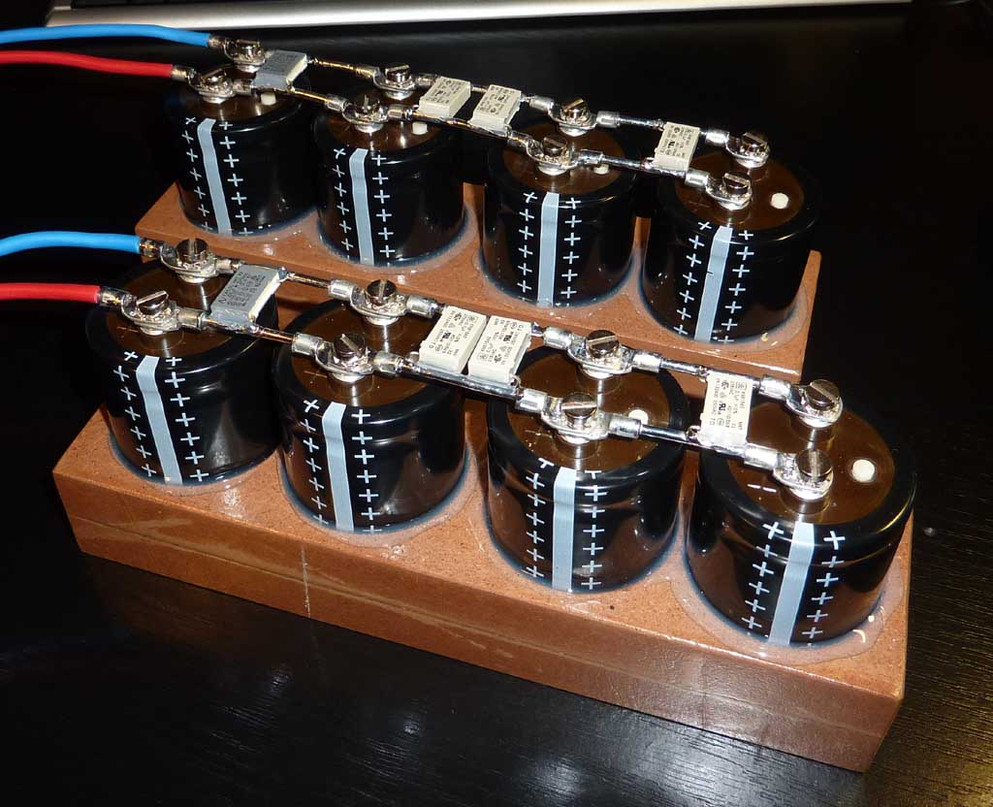 mostičkov ojačevalca, banke kondenzatorjev, mehak vklop banke kondenzatorjev,