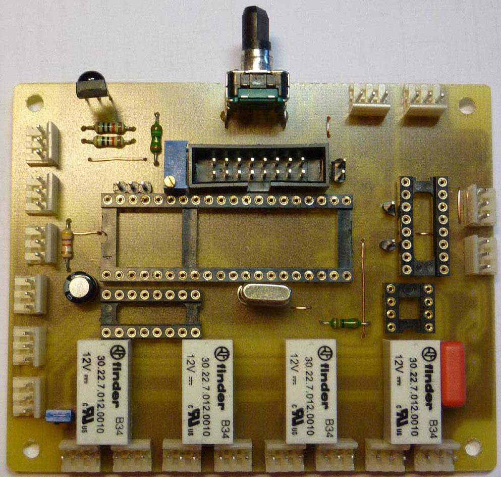na koncu pa sem dodal še blokirne kondenzatorje. Nosilci imajo na dnu luknje za pritrditev sestava na ploščo.