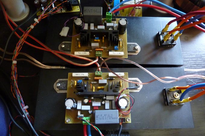 Prototipna postavitev gasilska slika. :-) Vidna je tudi banka kondenzatorjev glavnega usmernika.